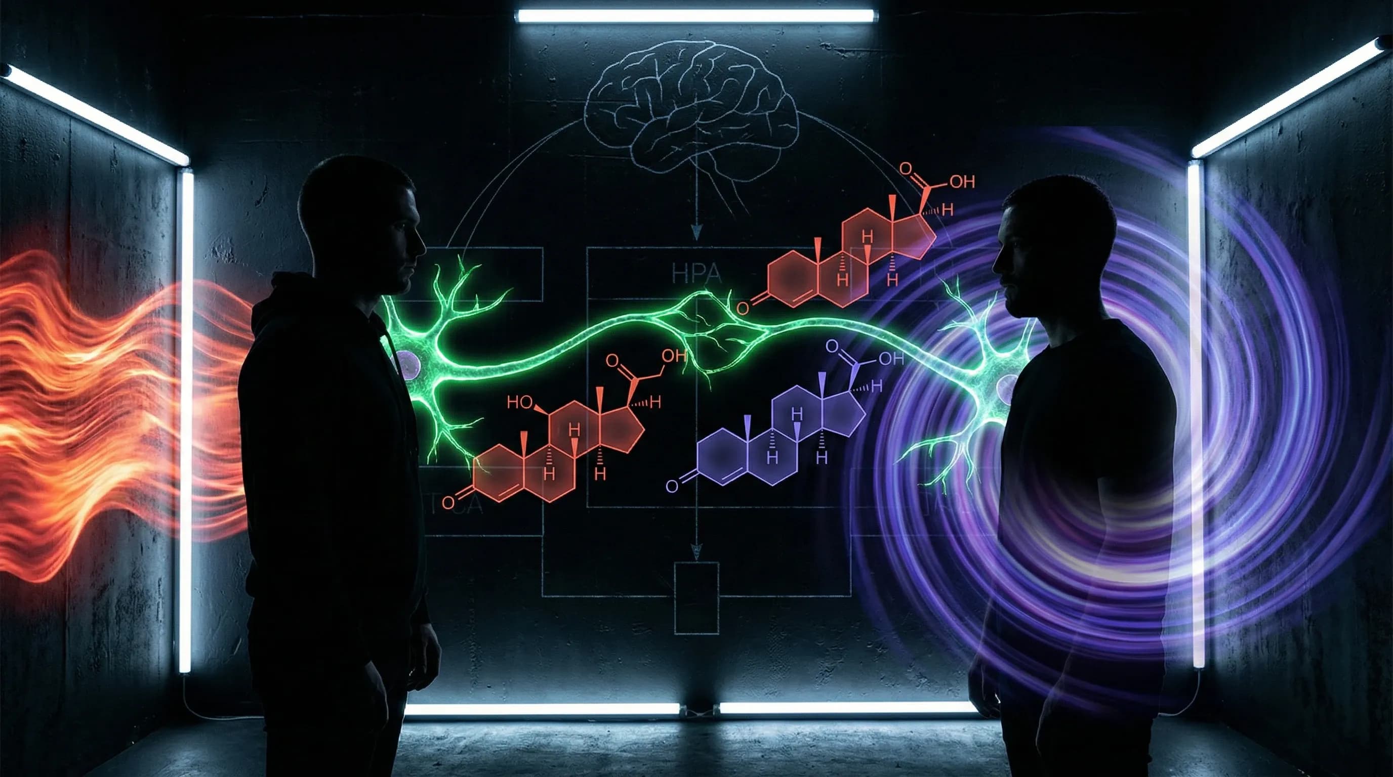 Cuando tu pareja está tensa, tus neuronas espejo simulan automáticamente su estado — es una reacción subcortical en milisegundos, que no requiere participación consciente. La activación de las neuronas espejo desencadena una cascada: amígdala (centro del miedo) → hipotálamo → liberación de CRH → hipófisis → ACTH → glándulas suprarrenales → cortisol (S005).
